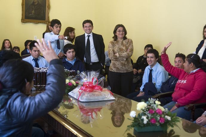 En la ocasión los alumnos hicieron entrega a la primera mandataria una canasta con productos que los alumnos realizan en el taller de panadería como así también invitaron a Corpacci a los agasajos por los 25 años de la institución.