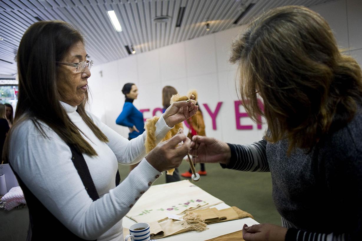 Los presentes también pudieron admirar el trabajo de los artesanos catamarqueños que, desde las primeras horas de la tarde, estuvieron exponiendo sus producciones textiles, en simbol rodocrosita y las alfombras de la fábrica provincial.