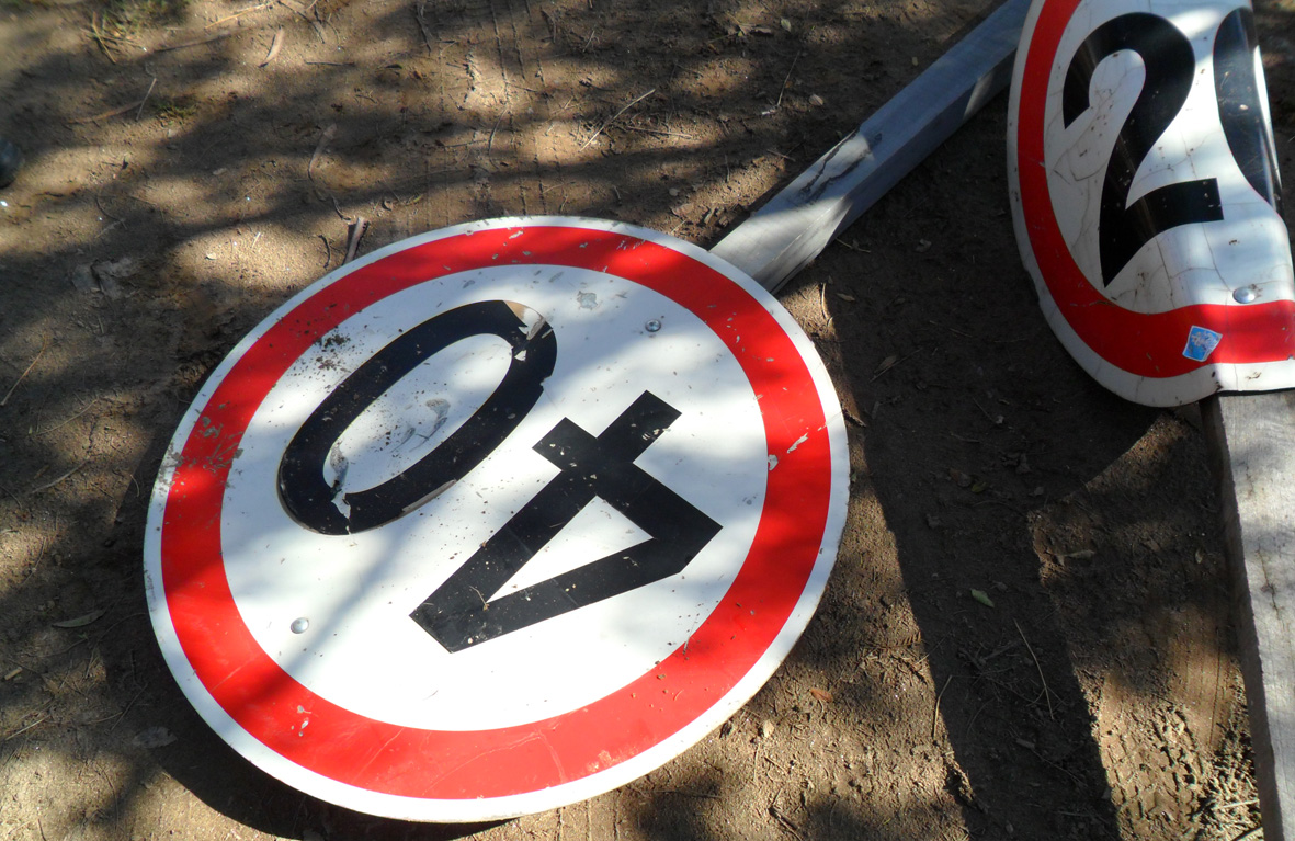 Además de los carteles dañados, se advirtió que varios carteles fueron retirados de su lugar, dañados y luego abandonados a la vera del camino, por lo que algunos pudieron ser recuperados, aunque en mal estado.