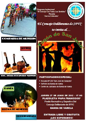 La intención es homenajear a San Juan Bautista, Patrono de nuestra ciudad, a través de una celebración cultural de carácter popular, recuperando las tradiciones propias de esta festividad, en la cual se contará con la actuación central de la Comparsa Calchaquí de Mutquín.