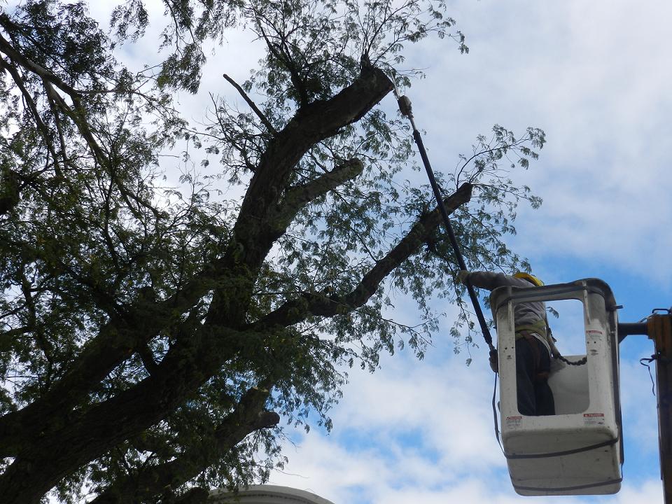 Los trabajos se realizan con una grúa de gran escala que permite al personal llegar a lo más alto de la copa de los árboles, donde se alojan ramas secas y viejas que son las principales obstructoras de visión y perjudican a la sanidad del árbol.