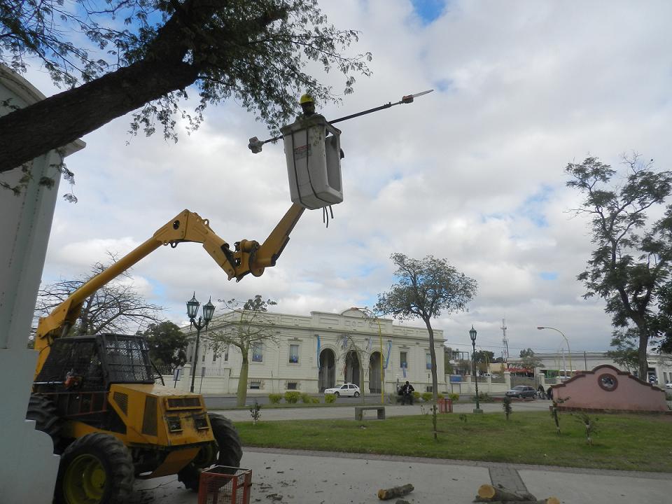 Ya se concluyeron trabajos de poda en las plazas 25 de Mayo, 25 de Agosto, Virgen del Valle y Alameda. También se podaron los árboles a lo largo de toda la avenida Ocampo.