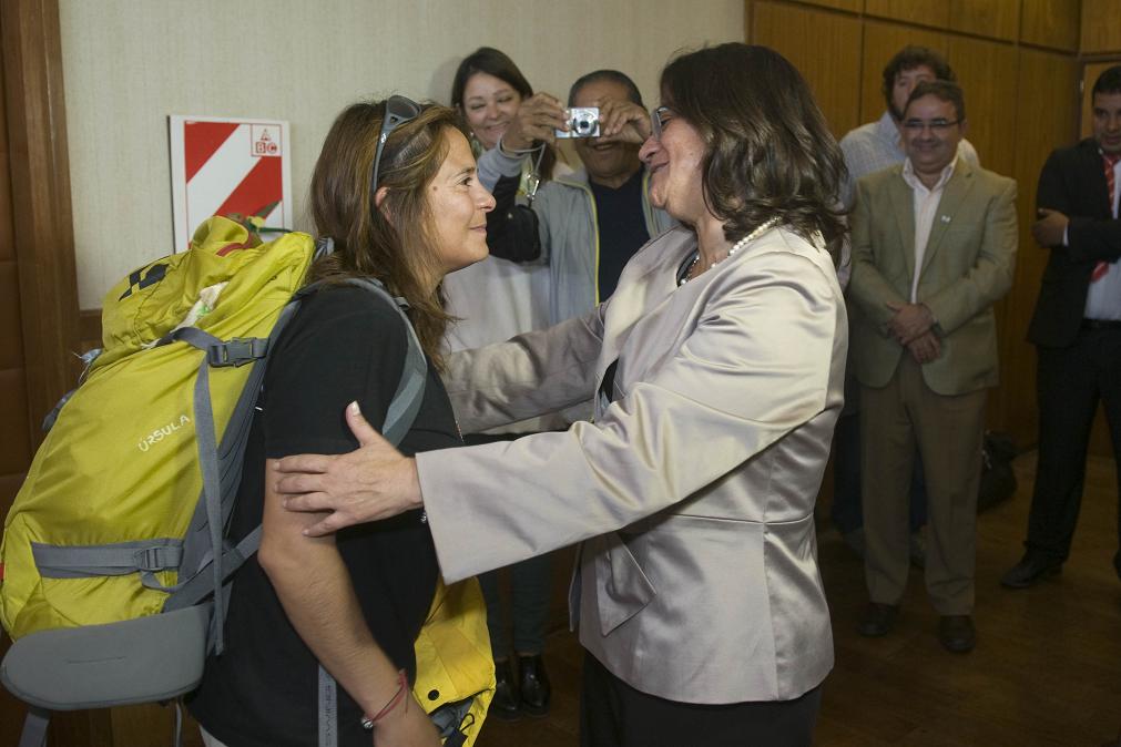 El primero en recibirla fue su padre Pascual, junto a su hermano Elías y a su cuñada, quienes le brindaron los primeros abrazos y felicitaciones por la proeza conseguido semanas atrás al llegar a la cima del monte Everest a 8.848 msnm.