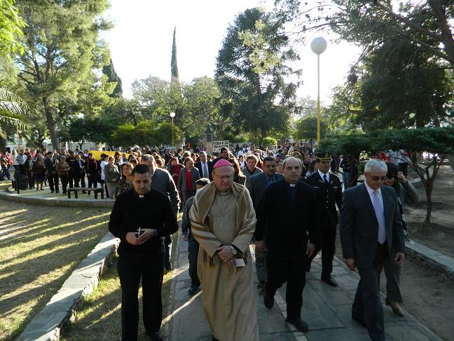 Desde este punto se trasladó hasta el principal paseo público del lugar, donde colocó una ofrenda floral a los pies de la estatua de Fray Mamerto Esquiú y luego todos los presentes rezaron con unción la oración pidiendo por la pronta beatificación del Venerable fraile catamarqueña que camina hacia los altares.