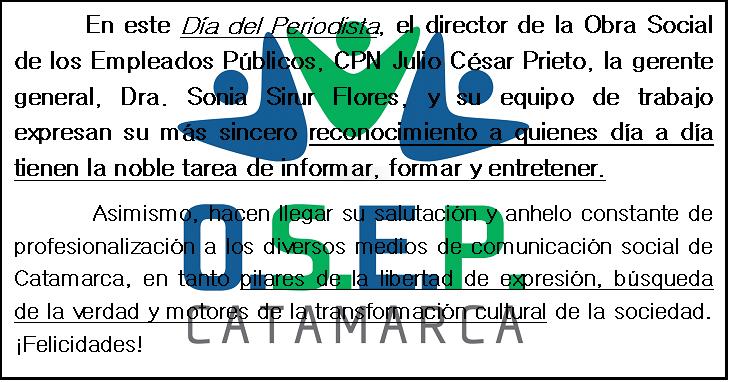 La Obra Social de los Empleados Públicos de la provincia saluda a los periodistas en su día.