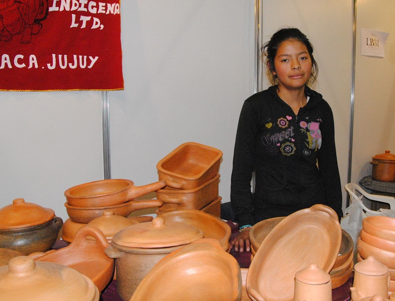Celeste Salazar, es una de las integrantes de este grupo de jóvenes, quienes juntos a sus padres conforman la Cooperativa de trabajo Olla de Barro Indígena L.T.D de la Quiaca, provincia de Jujuy. “Esta es la primera vez que venimos a participar de la fiesta del Poncho. Nos hablaron mucho de ella y trabajamos con los chicos y nuestros padres durante todas las vacaciones para poder estar acá. La gente es calidad y se acerca al stand”, contó Celeste.