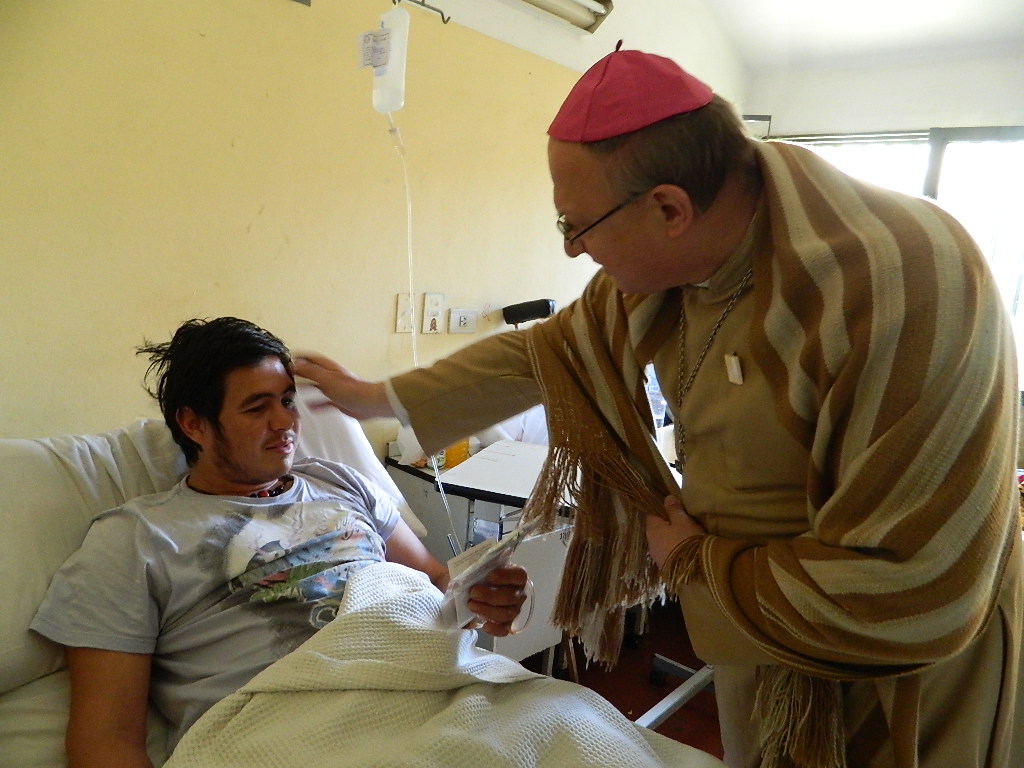 Hoy estuvo dedicada a la visita de los enfermos y personal del Hospital San Juan Bautista, acompañado por el párroco Antonio Bulacio y miembros de la Pastoral de la Salud. En el sector de guardia, saludó a médicos y de enfermeras y después se dirigió a la terapia intermedia, terapia intensiva y salas de internación, donde rezó con las personas que allí permanecen por alguna dolencia y sus familiares, administró el sacramento de la Unción de los Enfermos y entregó Rosarios con folletos explicativos.