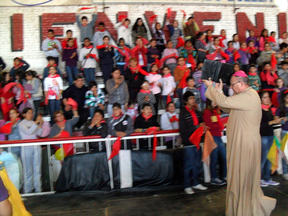 El escenario de este acontecimiento fue el club Red Star, hasta donde llegaron en procesión unos 2.000 niños y adolescentes que se preparan para recibir por primera vez a Jesús Sacramentado y la Confirmación.