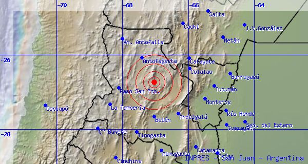 Esta mañana se registró el último movimiento telúrico con epicentro en el Oeste catamarqueño, a las 10.15:15, con una profundidad de 104 km. Y una magnitud de 3 grados en la escala de Ritcher.