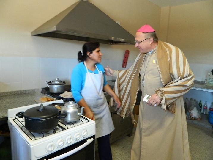 Durante su recorrido por el predio, el Obispo charló con los chicos que son atendidos en el lugar, como también con sus padres, y el personal que allí se desempeña.