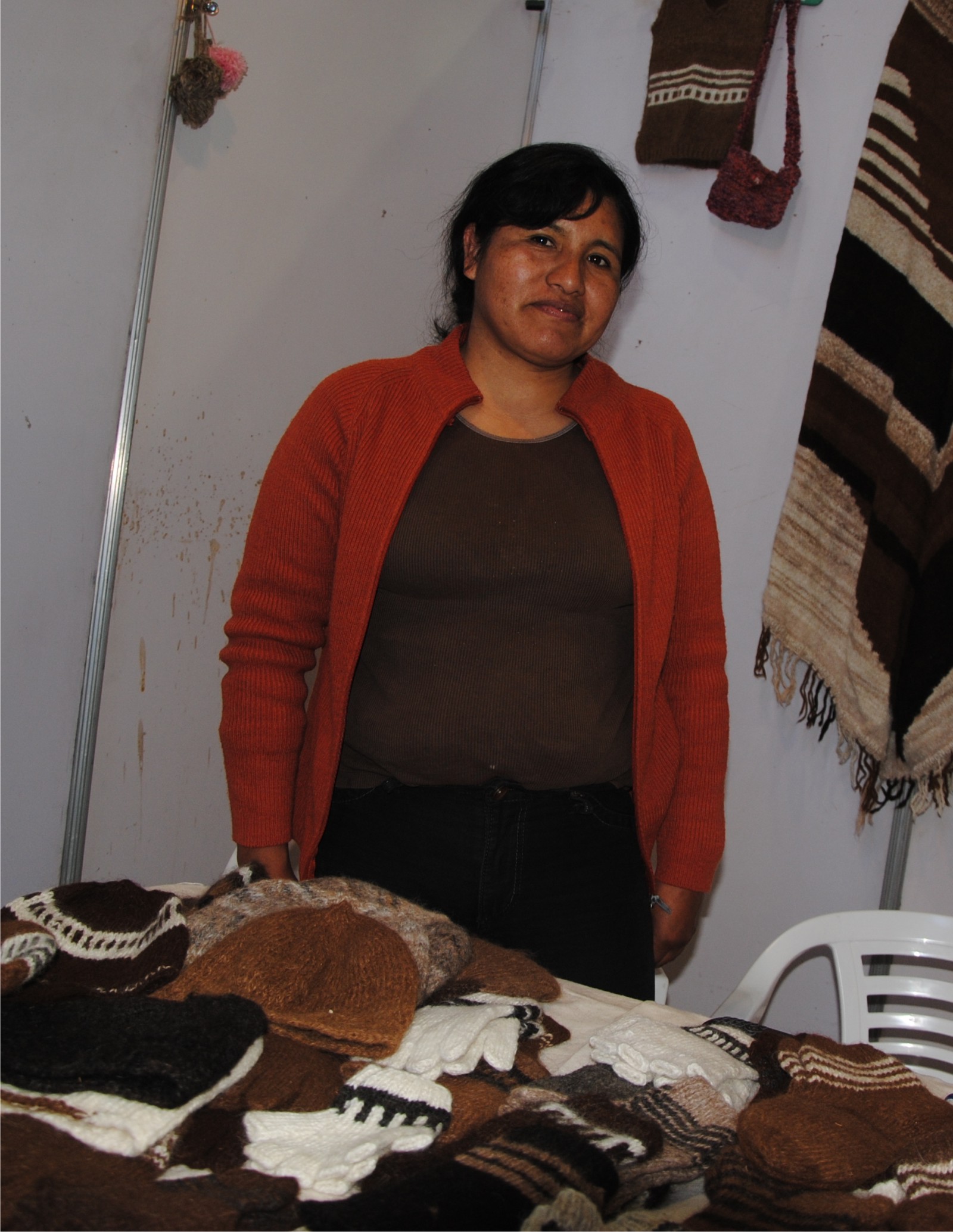 “Yo estoy ofreciendo gorros, chalecos, guantes medias, zoquetes en lana de llama y de oveja, tejidos en aguja”, comenzaba la charla con la tejedora “belicha” y continuaba contando. “Mi abuela a los cinco años ya nos ponía a tejer; somos diez hermanos, y todos sabemos tejer, a mi abuela no le gustaba que anduviéramos jugando o perdiendo el tiempo y entonces si no estábamos hilando estábamos tejiendo”.