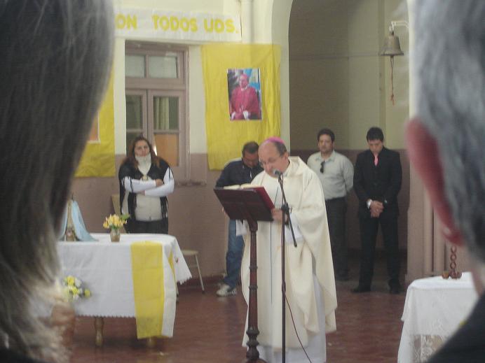 Luego del ingreso de las banderas de ceremonia, se realizó una misa celebrada por el Arzobispo de Salta Monseñor Mario Antonio Cargnello, ex alumno de la promoción y abanderado. Cargnello destacó la importancia de la escuela como formadora de hombres libres y comprometidos con la realidad, la importancia de la maestras “verdaderas segundas mamas” que supieron transmitir lo necesario para un futuro mejor.