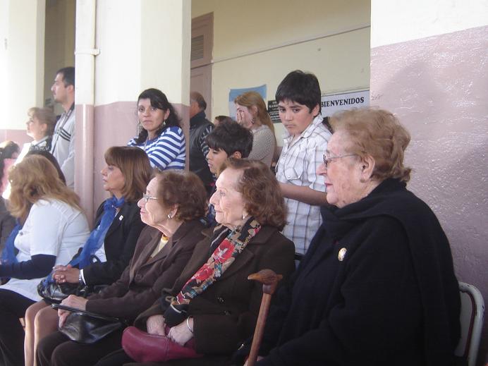 La conmemoración comenzó con el ingreso de los egresados de aquel tiempo que ocuparon los primeros asientos en medio de aplausos de la numerosa concurrencia, además del plantel propio de la escuela, familiares, amigos y de las maestras de ésos años: Sra. María Luisa Bellavía de Cacciato, María Mercedes Vergara de Marcchetti y Yolanda Savioli de Jalabert.