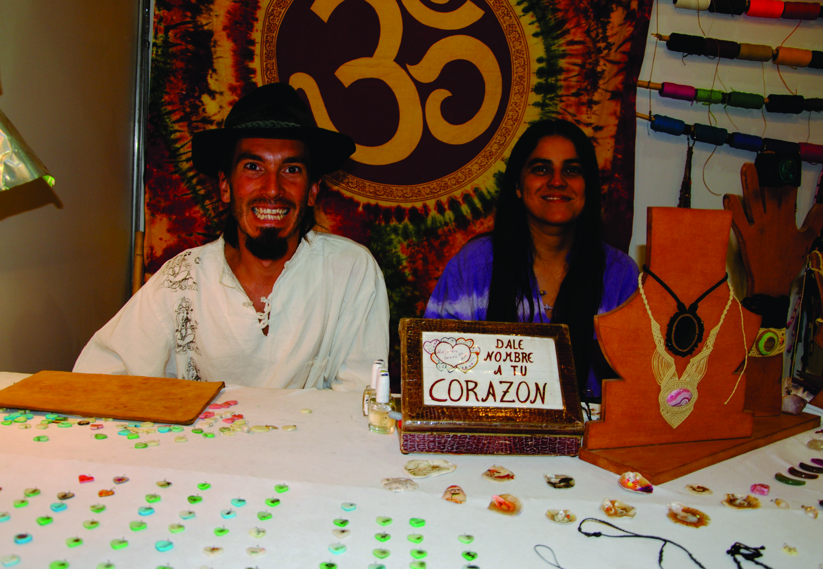 “Hace diez años que soy artesana. Comencé a trabajar con la cerámica, pero quería viajar conocer otros lugares y busque una artesanía alternativa. Algo que me permitiera conocer y hacer de ello mi oficio. Entonces me inicie en el trabajo del hilo encerado, en el macramé y las piedras. Los tejidos y las esculturas me permitieron cumplir mis anhelos”, contó Alejandra quien junto a Martín exponen sus artesanías en uno del stand del pabellón dos.