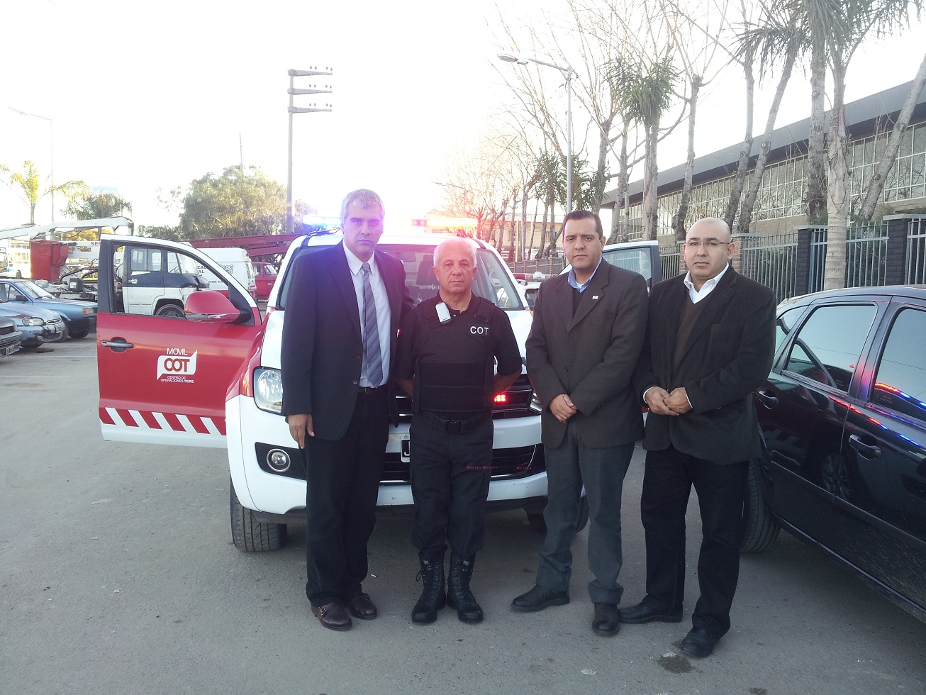 La comitiva municipal está integrada por el Dr. Guillermo Matterson, el director de Seguridad Interna y Externa, Julio Gómez, y el director del Centro de Tecnología y Comunicación, Pablo Vega.
