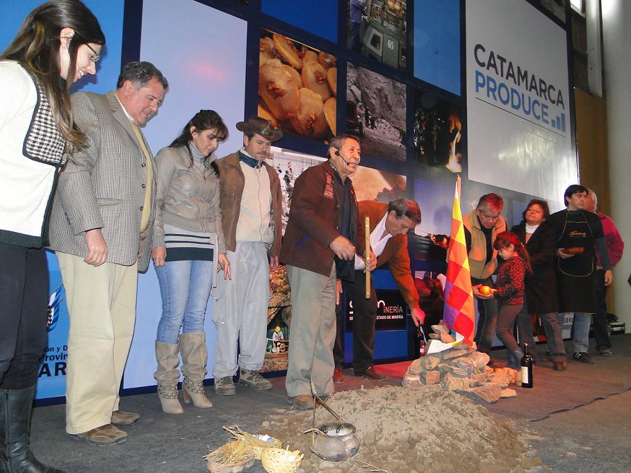 Previo al inicio de las actividades en esta jornada, el ministro de Producción y Desarrollo, Ángel Mercado, guiado por el referente de los pueblos originarios, profesor Mario Toro, participó activamente de la ofrenda a la Pachamama, que se realizó agradecer por lo que nos brinda y pedir por el éxito de las producciones de Catamarca.