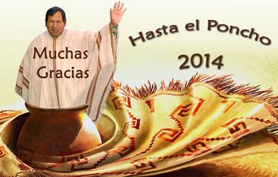 “Para todos, CHANGOS Y CHINITAS: Un abrazo agradecido y calchaquí y nos vemos en el Festival Nacional e Internacional del Poncho 2014... Y NO ME CORTEN EL TRATAMIENTO !!!”.