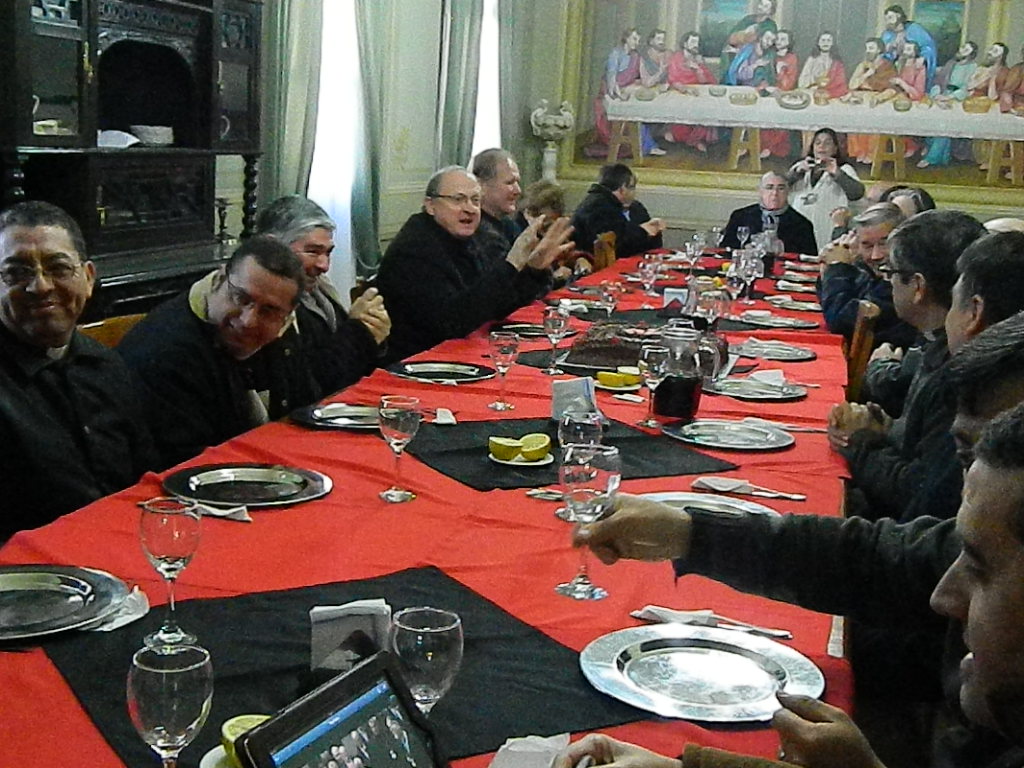 Por su parte, en horas del mediodía, Mons. Urbanc fue agasajado por los sacerdotes durante un almuerzo que compartieron en el comedor del Obispado local, en un encuentro fraterno y de mucha alegría. Se sumaron a este brindis su hermano Francisco, también sacerdote, y amigos que llegaron desde Tucumán para esta ocasión especial.