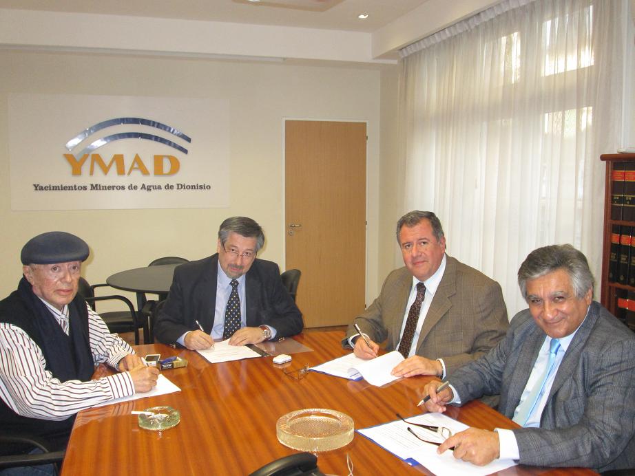 El acuerdo fue generado por el Ministro de Producción de la Provincia, Ángel Mercado y se materializó mediante la firma de un convenio entre los presidentes de ambos organismos: Dr. Manuel Benítez, de Yacimientos Mineros de Agua de Dionisio y David de la Barrera, de Catamarca Minera y Energética Sociedad del Estado (CAMYEN SE). El acto, que se realizó en las oficinas de YMAD en Capital Federal, contó con la presencia del ministro y del Director de YMAD, Armando Mercado.