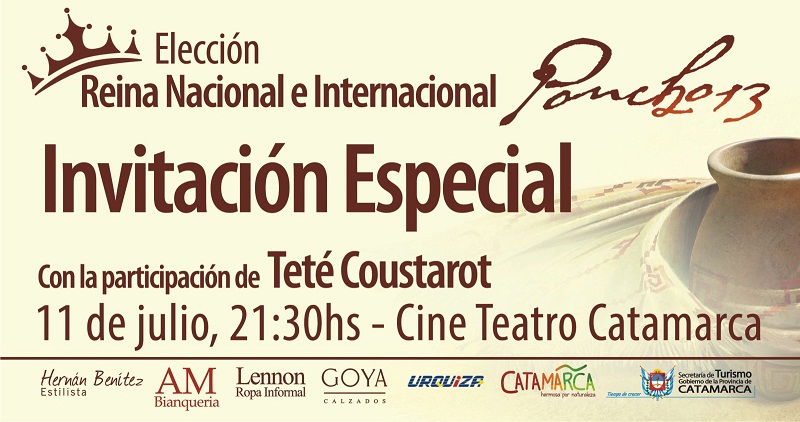 Desde la Secretaria de Turismo de Catamarca se informa al público en general que desde el próximo lunes 8 de julio se entregaran las entradas para participar de la elección de la Reina del Poncho 2013.