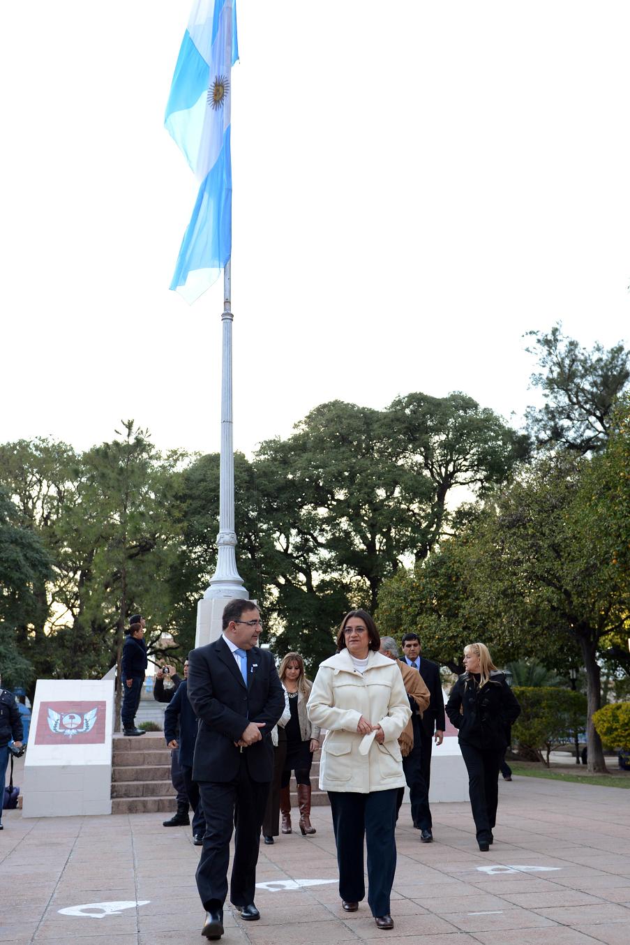 Al comienzo de la jornada, el intendente Raúl Jalil, acompañado por la gobernadora de la provincia, Lucía Corpacci, la diputada provincial Silvia Moreta, demás legisladores y funcionarios de ambos gobiernos, realizaron el izamiento del pabellón nacional en la plazoleta de la bandera en la plaza 25 de Mayo. Seguidamente, las autoridades se dirigieron al Teatro del Sur donde compartieron un desayuno patrio con los participantes del desfile.