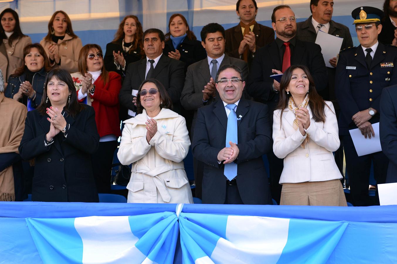 Para dar comienzo al gran desfile, el intendente y la gobernadora pasaron revista de tropas y recibieron el saludo de la Agrupación 5 de Julio. Las demás autoridades tuvieron su presentación correspondiente y las bandas de música de la Municipalidad y de la Provincia entonaron el Himno Nacional Argentino y el Himno a Catamarca.
