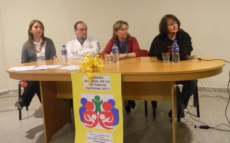 Luego la residente en obstetricia Roxana Álvarez junto con la jefe de residentes en Obstetricia, María Acosta explicaron las acciones que llevan a cabo en pos de la lactancia materna. Después, la psicóloga Roxana Díaz y la referente del Consultorio de Alta Conjunta, Dra. Estela Bustamante de Moreno recalcaron el trabajo que realizan con las mamás.