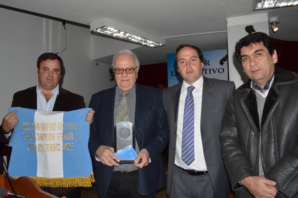 Para ser homenajeados estuvieron presentes en el recinto el expositor Alejandro Lauret y su propietario Carlos Passerini, quienes expusieron la Bandera Argentina que simboliza el galardón obtenido en la rural.