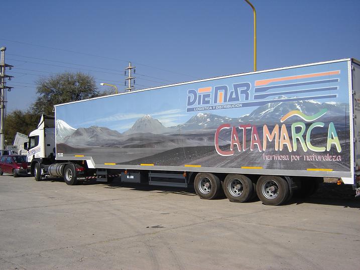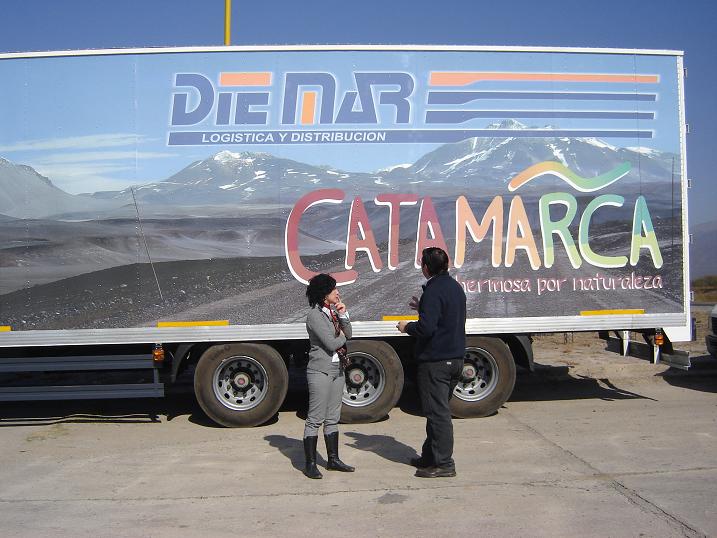 Los camiones ploteados en esta estructura de furgones con la invitación a visitar nuestra provincia estarán circulando por Buenos Aires y Trelew, con este tipo de diseño. “Los que llegan a la provincia son 25 camiones, hasta llegar a totalizar unas 75 unidades. Lo que estamos tratando es posicionarnos más, haciendo un desarrollo logístico para todo el NOA con base en Catamarca para el resto de las provincias”, explicó Colonna.