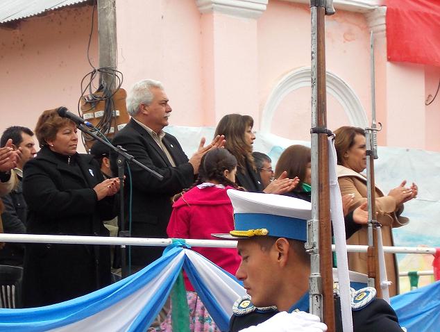 El acto inició oficialmente con el paso de revista de tropa y saludo del intendente acompañado por el Oficial principal Infante.