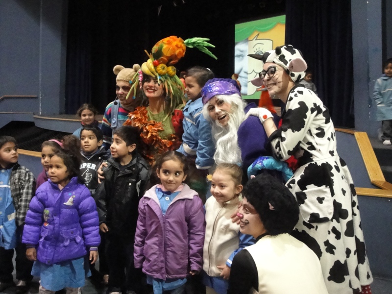 Tras la primera de las funciones escolares presentadas esta semana, Valentina Bomczuk, Eugenia María Urioste Parra, Lucía Bolomo, Carolina Venturini Quiroga e Indiana Savio, todavía en la piel de sus personajes, se fotografiaron con los chicos que asistieron a la función y luego hablaron de su experiencia teatral.