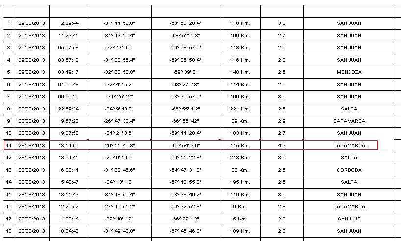 El movimiento fue a las 18:51 y el epicentro se ubicó a 115 kilómetros de profundidad en el límite entre los departamento Santa María y Belén. No se reportaron daños materiales. En segundo lugar se ubicó un temblor en la provincia de San Juan, con 3.4° en la escala de Richter.