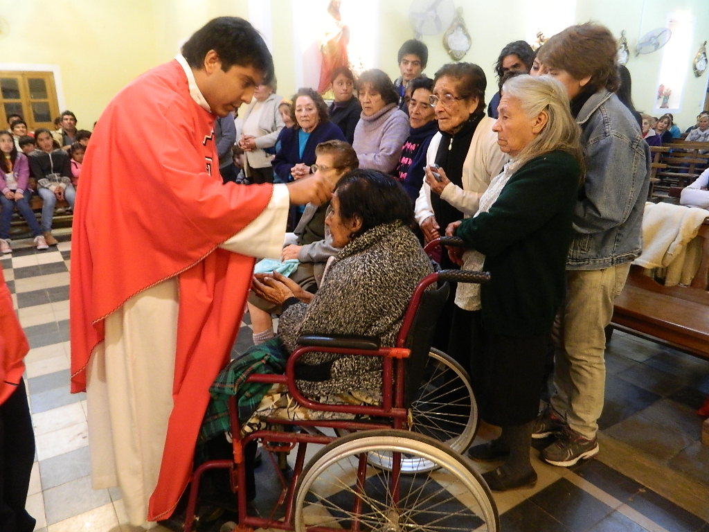 El jueves 29, el Pbro. Lucas Segura, Vicario de la Parroquia Nuestra Señora de la Candelaria, presidió la Santa Misa, en el transcurso de la cual administró el sacramento de la Unción de los Enfermos a personas que padecen alguna dolencia y a los ancianos de la comunidad.