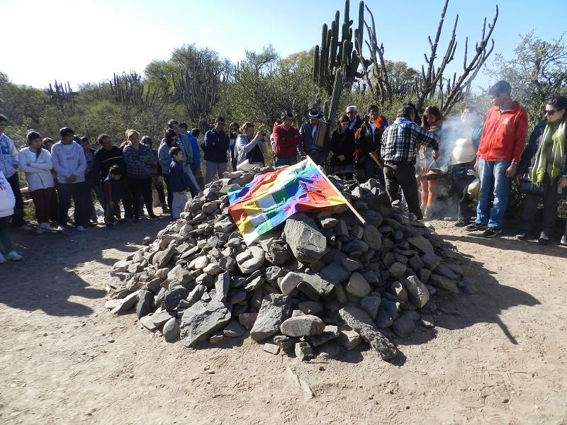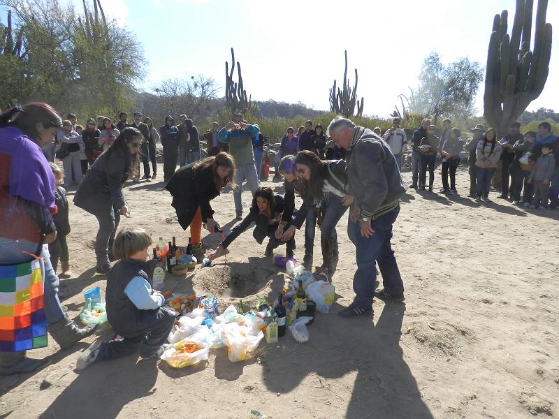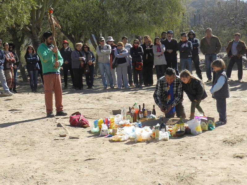 Por segundo año consecutivo, el altar indígena del Pueblo Perdido fue testigo de la ofrenda a la Apacheta, sitio de adoración a la Pachamama, donde se le colocaron bebidas, coca y una piedra. El homenaje continuó con la ceremonia del bautismo, realizada a dos personas mediante un ritual sagrado.