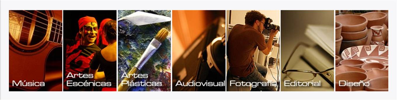 Está organizado por ramas artísticas que aspiran a abarcar la diversidad de expresiones y manifestaciones culturales: música, artes escénicas, artes plásticas, audiovisual, fotografía, editorial, diseño (objetos, indumentaria, gráfico, artesanal).