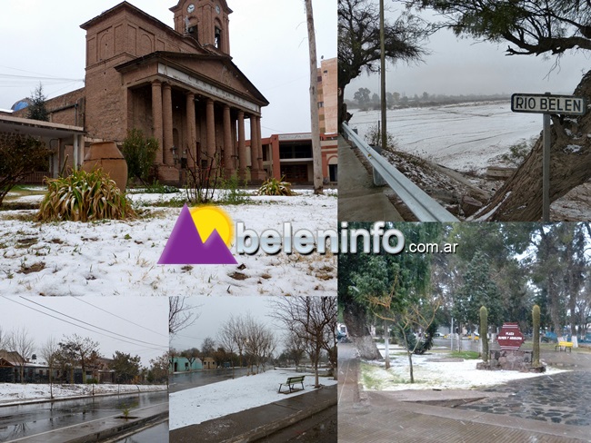 Esta mañana en la ciudad de Belén, los habitantes se sorprendieron y disfrutaron de la caída de nieve. El fenómeno meteorológico, inusual para esta zona de la provincia de Catamarca, comenzó con un descenso importante de temperatura, luego la caida de agua nieve y finalmente los copos tan esperados que tiñeron de blanco la ciudad \"Cuna del Poncho\".