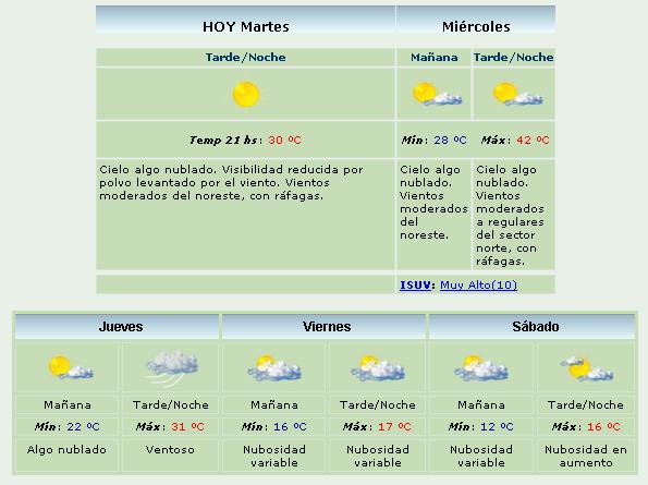 Situación: EL SERVICIO METEOROLOGICO NACIONAL INFORMA QUE TEMPERATURAS INUSUALMENTE ALTAS PREVALECERAN DESDE EL LUNES 9 Y DURANTE LOS PROXIMOS DIAS EN LA REGION, CON MAXIMAS DE HASTA 40º C.
