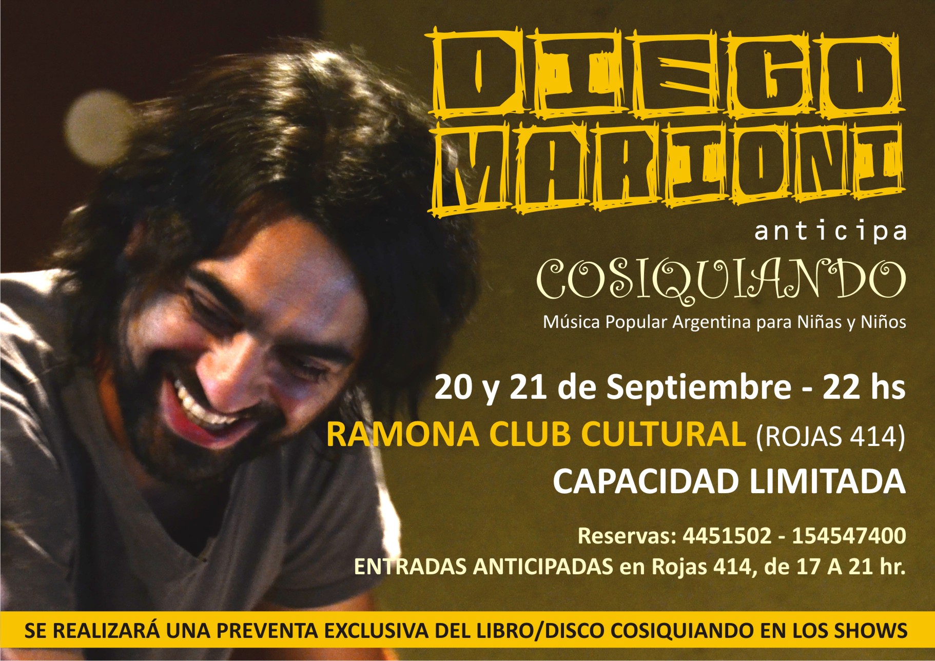 En los dos show se realizará una pre-venta de Cosiquiando, que apuesta a la financiación colectiva. Precio promocional 100 pesos.