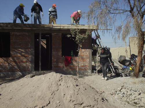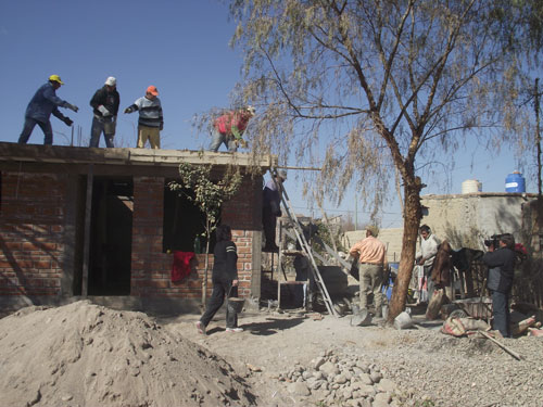 En la mañana del pasado viernes, una cuadrilla de siete operarios municipales estuvo trabajando en la casa de la Sra. Gloria del Valle Agüero, para completar el techado con hormigón de toda la vivienda.