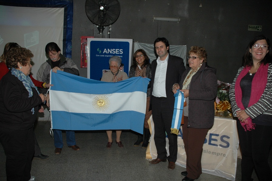 Luego, la Lic. Carolina Melnik, en representación de ANSES hizo entrega a la institución de una Bandera de Ceremonia de Presidencia de la Nación. Al respecto, señaló: “Este tipo de actos significa reconocer la tarea de ustedes en los centros de jubilados. Hay que seguir soñando para hacer cada día un país un poco mejor. En estos últimos años en el país se han tomado importantes medidas para nuestros jubilados como el Programa de Inclusión Previsional, la Ley de Movilidad, la cuenta gratuita previsional, el programa “ARGENTA”, sabemos que falta pero también debemos defender entre todos lo que hemos conseguido”, afirmó Carolina Melnik.