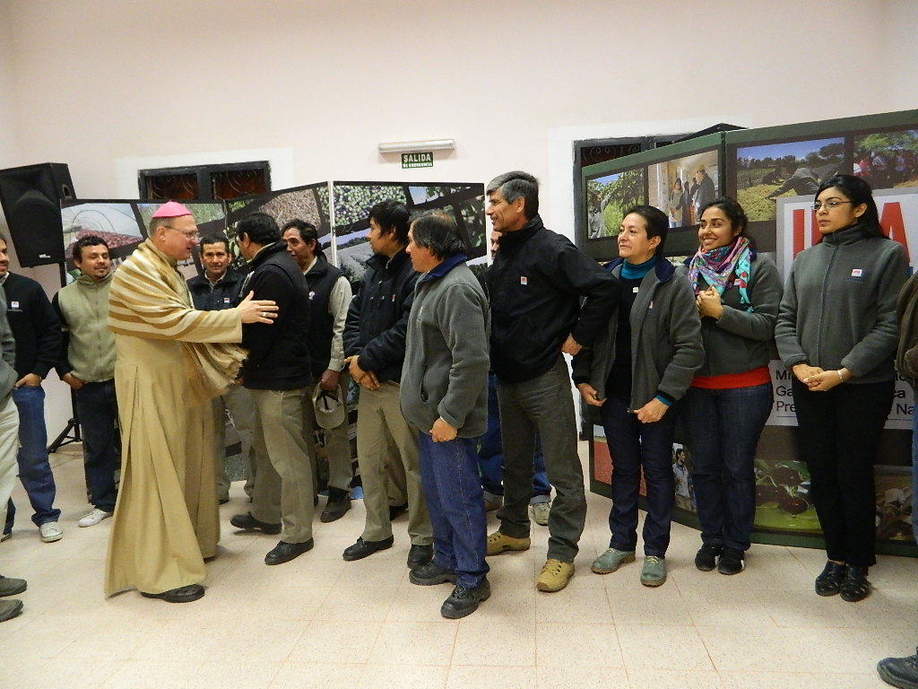 Continuando con el recorrido, Mons. Urbanc llegó hasta la Estación Experimental Agropecuaria Catamarca del Instituto Nacional de Tecnología Agropecuaria (INTA), ubicado en la localidad de Sumalao, donde recibió el saludo del director del organismo nacional, Ing. Rodolfo Mansilla, quien manifestó que “es un honor para nosotros recibirlo; nunca antes vino un obispo a visitarnos en nuestra casa”. Posteriormente, se encaminaron hasta el Salón de Usos Múltiples (SUM), donde compartió una charla con el personal que allí se desempeña, en el trascurso de la cual explicó el sentido de la visita pastoral, indicando que busca “salir al encuentro de los creyentes, conocer cómo viven, para poder acompañarlos, alentarlos. A mí me toca velar por los dones de la Fe, la Esperanza y el Amor”. “El amor es vinculante, salgo de mí mismo y voy al encuentro del otro; y me lleva al compromiso”, enfatizó. Por ello instó a los miembros del INTA Catamarca a ocuparse del otro, a salir de uno mismo para aprender a mirar las necesidad del otro.