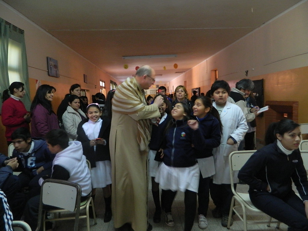 El itinerario de la mañana continuó en la escuela de Polcos y con la visita a enfermos en Villa Dolores; en tanto que a las 13.00 está previsto el almuerzo con Bomberos Voluntarios.