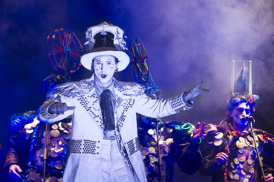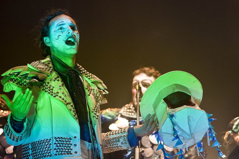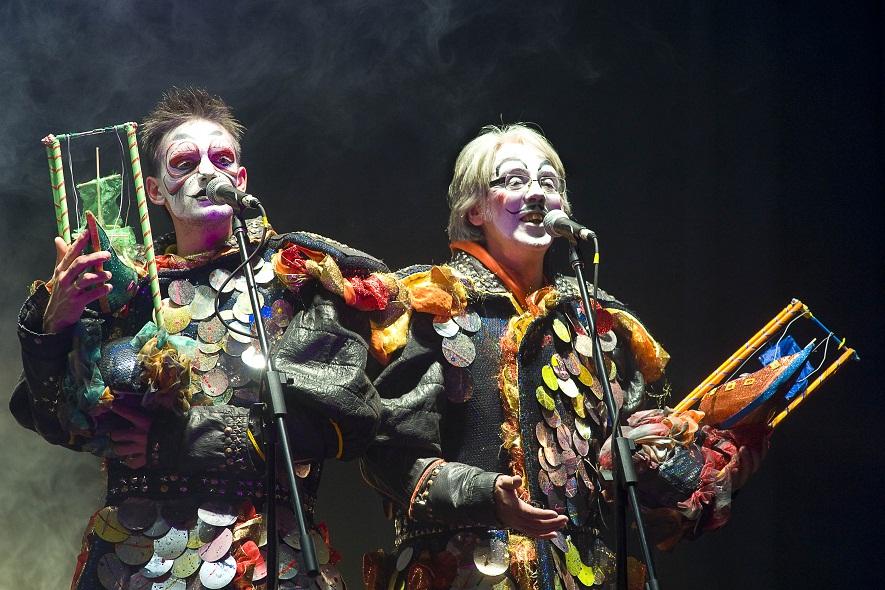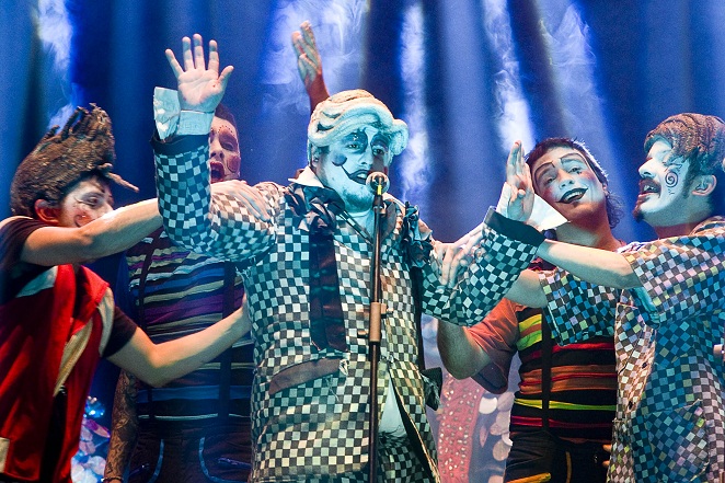 Con coloridos trajes y una banda de percusionistas que acompañó toda la puesta, los actores-cantores mostraron un repertorio artístico sumamente actual con referencias a la política, críticas al progresismo light y divertidas reflexiones sobre situaciones de la vida cotidiana.