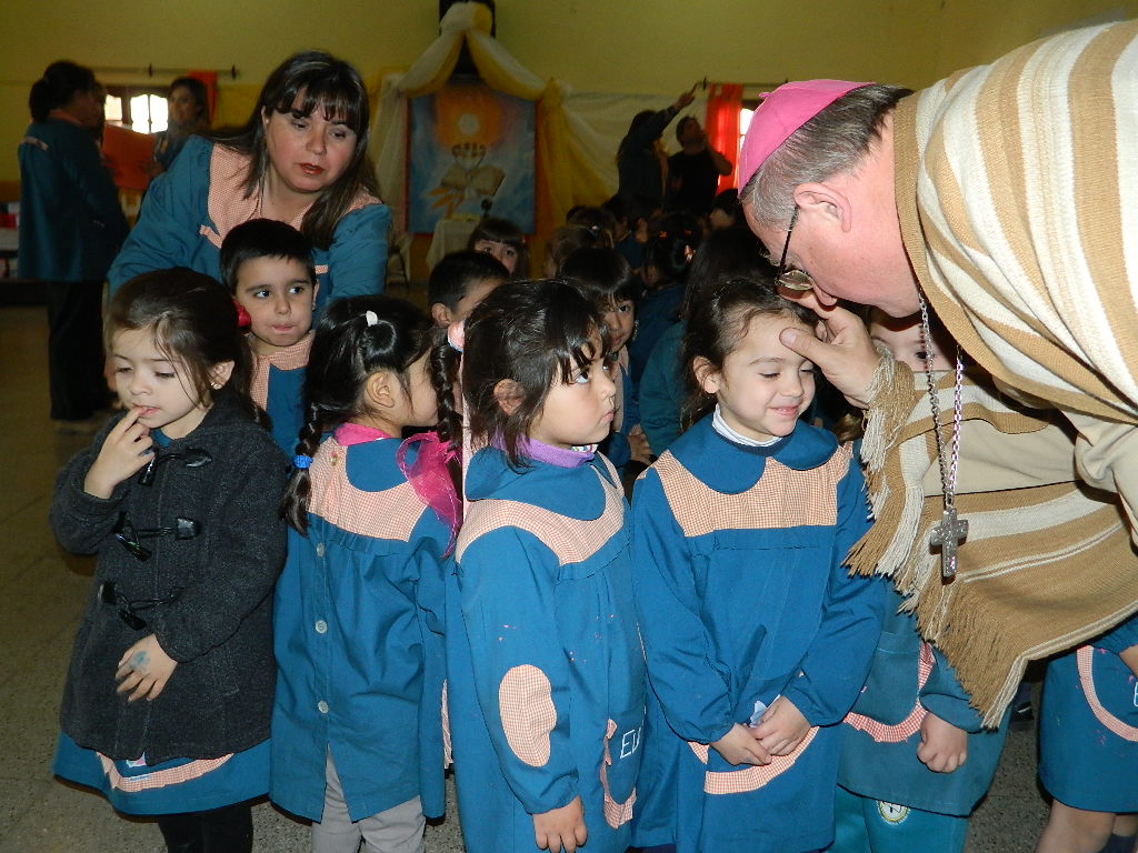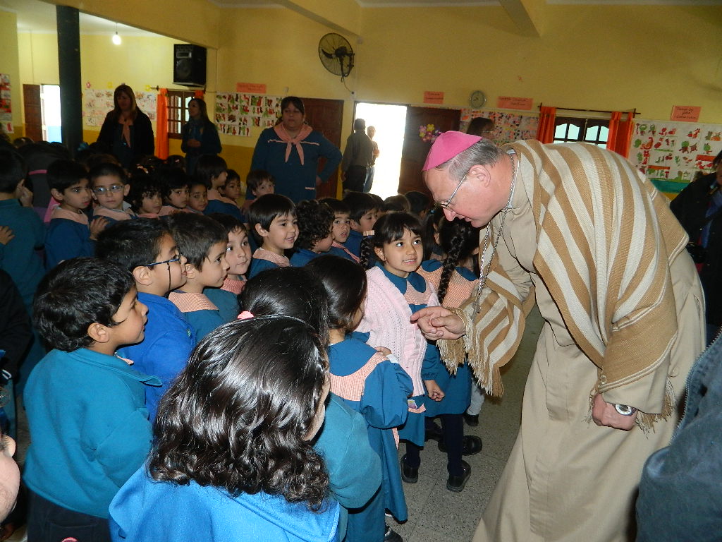 Concluido el encuentro con los niveles Primario y Secundario, el Pastor Diocesano visitó el Jardín de Infantes del Colegio Guadalupe, ubicado en el Camino de la Virgen frente a la Ermita.