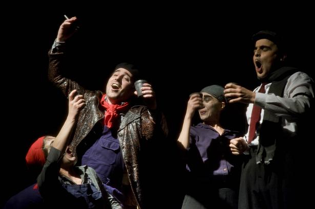 En la escenografía, despojadísima, un telón de tul blanco separa a los actores del público y es la manera elegida para dar visibilidad a sus sueños, sueños colectivos en los que el arte y fundamentalmente la poesía parece ser determinante para la libertad, aún a costa de dejar la vida en ello.