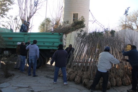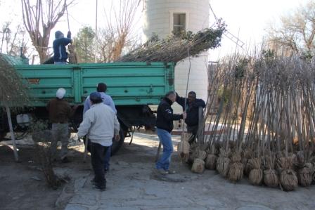 Los ejemplares de siempre verde y fresnos adquiridos en un vivero de Santiago del Estero se depositaron en un lugar especialmente acondicionado en la comuna de Chañar Punco, desde donde serán distribuidos según se vaya efectuando las tareas de forestación.