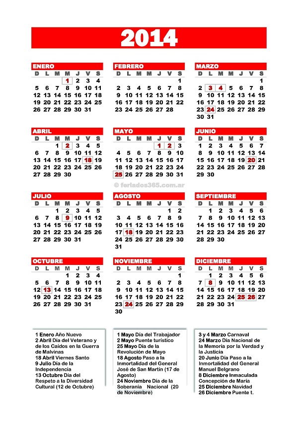 Además, los feriados que fueron trasladados para generar fines de semana largo son el del 17 de agosto, el 12 de octubre y el 20 de noviembre.