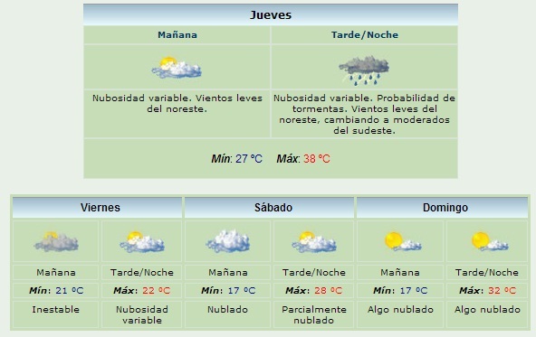 La información según el Servicio Meteorológico Nacional indica lo siguiente:
