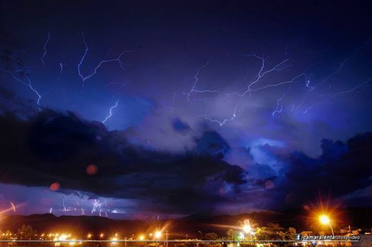 Oviedo dijo que no se sabe si hubo victimas fatales y que la situación tiende a empeorar porque la tormenta sigue castigando con inusitada fuerza. (foto de la tormenta eléctrica que se desató anoche en el cordón montañoso de El Ambato tomada por Ramiro Argañaraz).