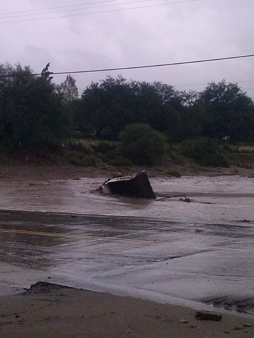 De acuerdo a lo manifestado por las personas que fueron testigos de lo sucedido, el río arrastraba gran cantidad de agua, motivo por el que muchos vehículos se encontraban de ambos lados del mismo esperando que bajara la corriente para poder cruzar, cuando de repente el camión decidió cruzar sin percatarse del peligro que ello podría causar y al momento en el que se encontraba en medio de la calzada fue arrastrado por la corriente que envolvió al camión y lo largó hacia el lado oeste del mismo. En ese momento los ocupantes del mismo fueron arrojados y arrastrados también por la corriente.